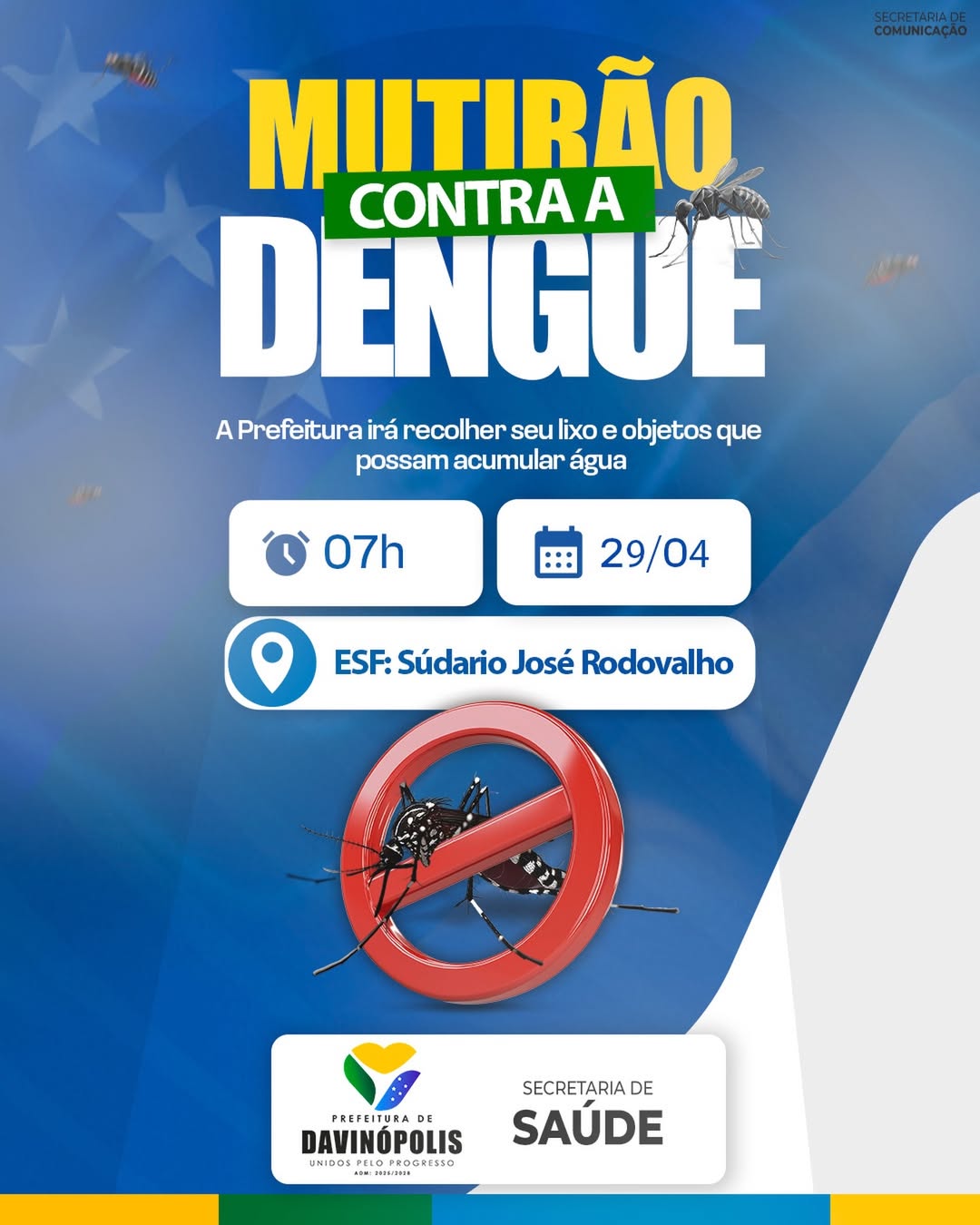 A Prefeitura estará realizando a coleta de lixo e objetos que possam acumular água — principais focos do mosquito.